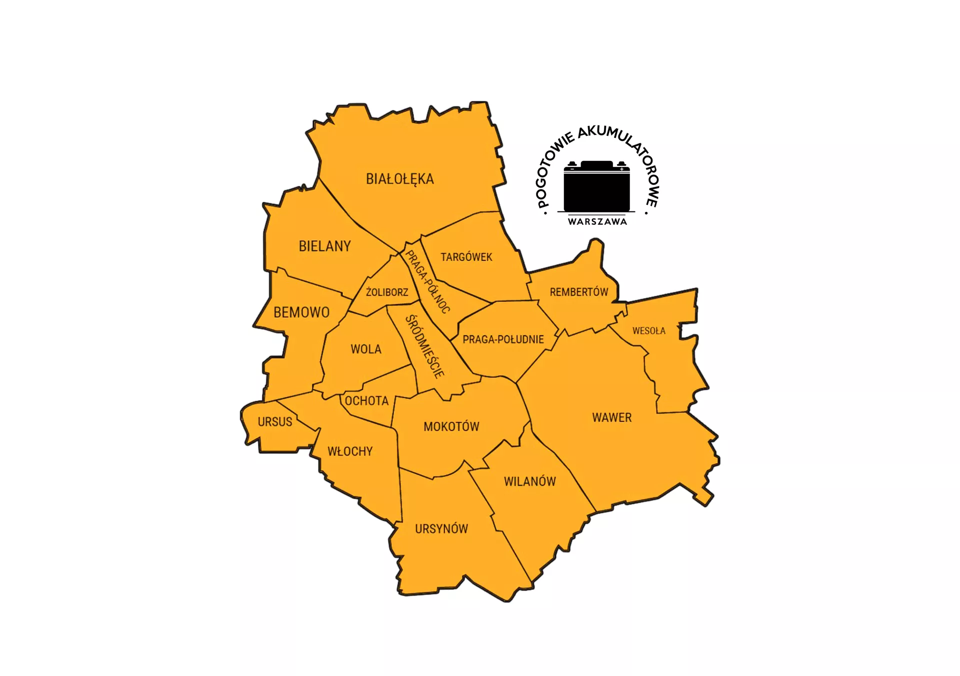 Zadzwoń teraz – przyjedziemy nawet w 30 minut!Mobilna wymiana akumulatora możliwa jest na terenie całej Warszawy i okolicznych miejscowości: